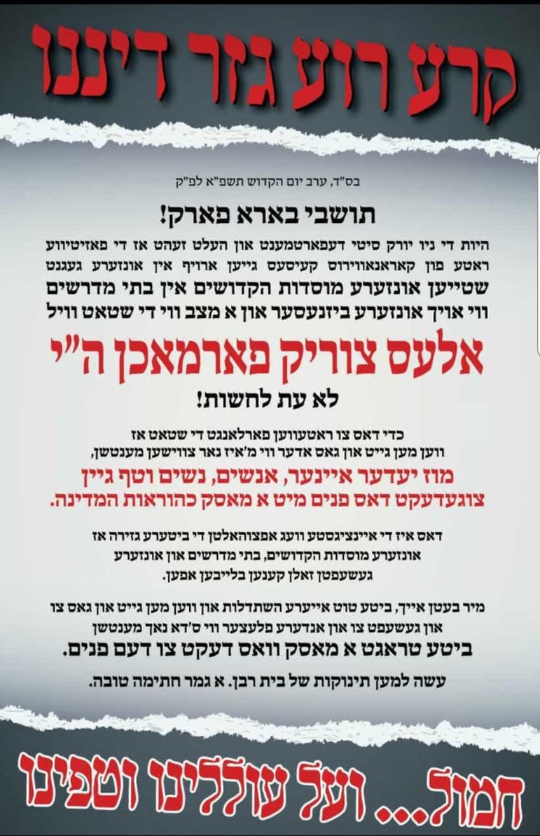 Another Fresser Diktat with Nisht-Glatt & Berman standing at their side was to have all the yeshivos & Bais Yaakovs tell parents, HURRY! Don't delay herding your kids back into the classrooms because the virus has mutated to be less dangerous.